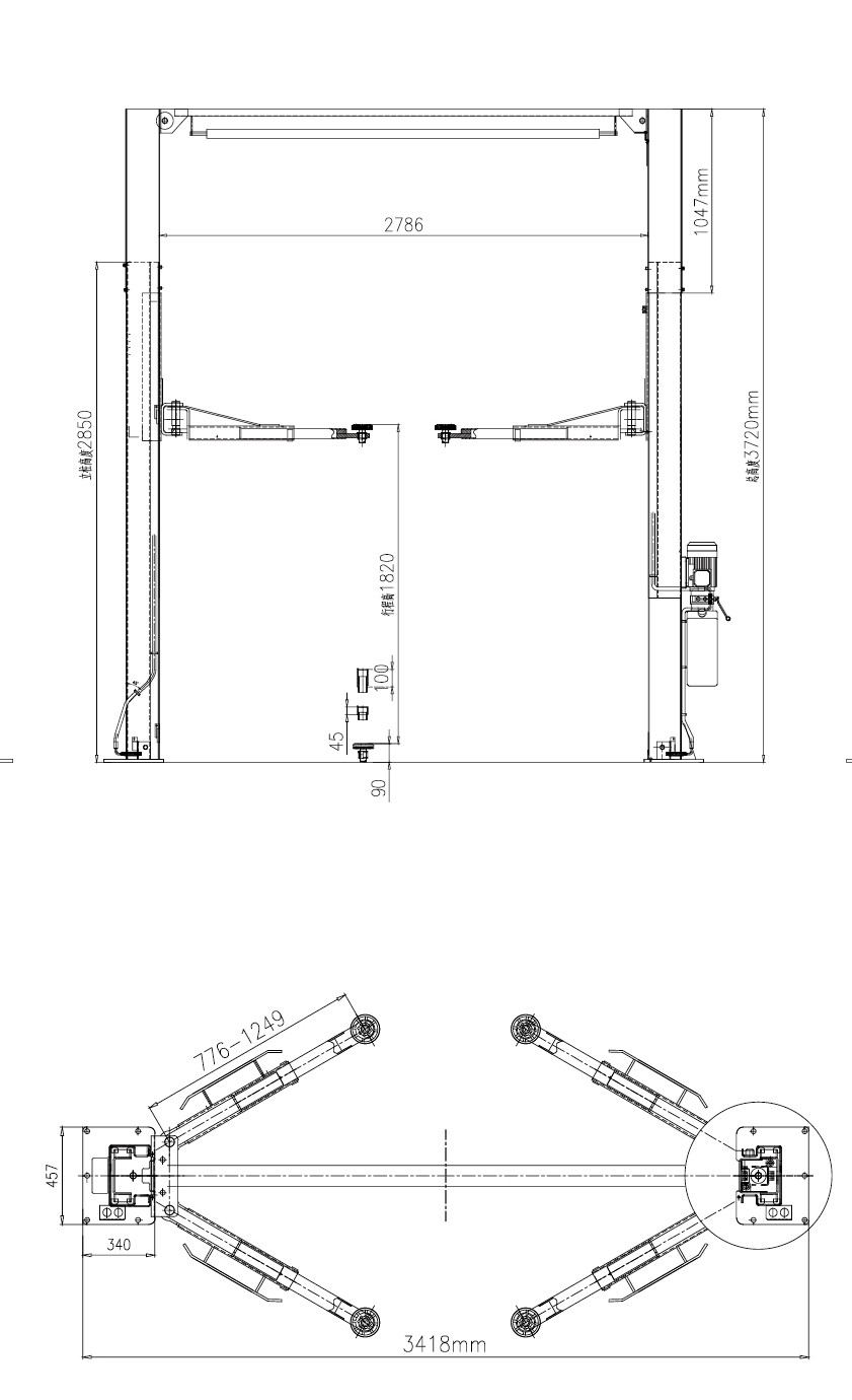 2포스트 카 리프트 기술 사양: