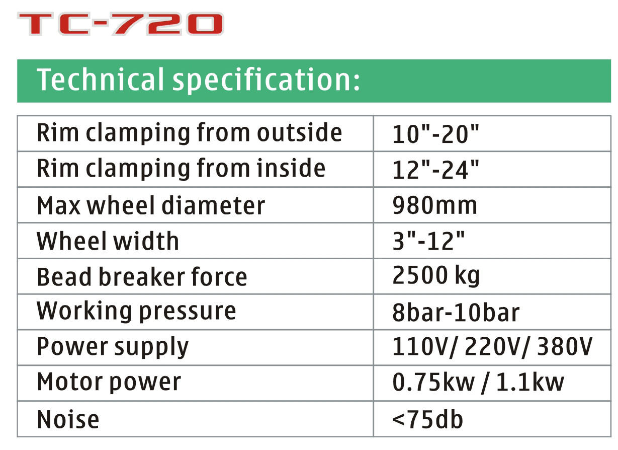 타이어 교환기 TC-720 / 자동차 타이어 교환기 / 타이어 교환기 / 타이어 기계