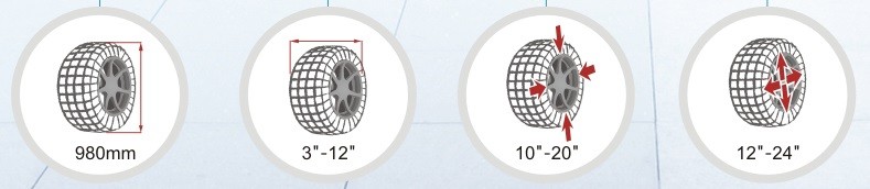| 내부에서 림 클램핑 | 12'-24' | 12'-24' | 12'-24' | 13'-26' | 13'-26' |