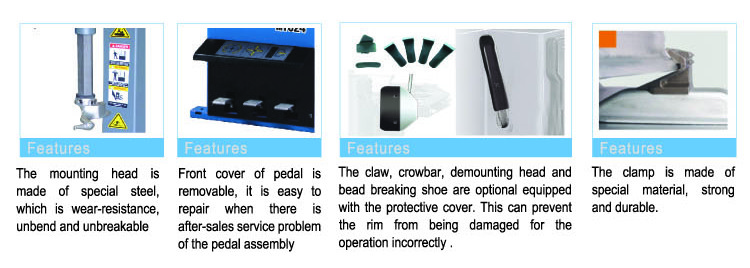 5) 클로, 지렛대, 분리 헤드 및 비드 브레이킹 슈에는 옵션으로 보호 커버가 장착되어 있습니다.이렇게 하면 잘못된 작업으로 인해 림이 손상되는 것을 방지할 수 있습니다.