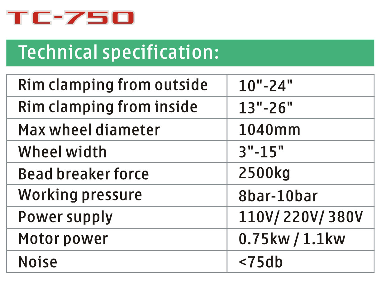 타이어 교환기 TC-750 / 자동차 타이어 교환기 / 타이어 교환기 / 타이어 기계