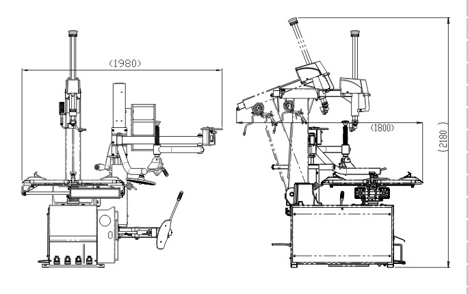 1) 자동 타이어 교환기, 기둥의 전후 틸트 및 기둥의 잠금은 공압으로 완료될 수 있습니다.