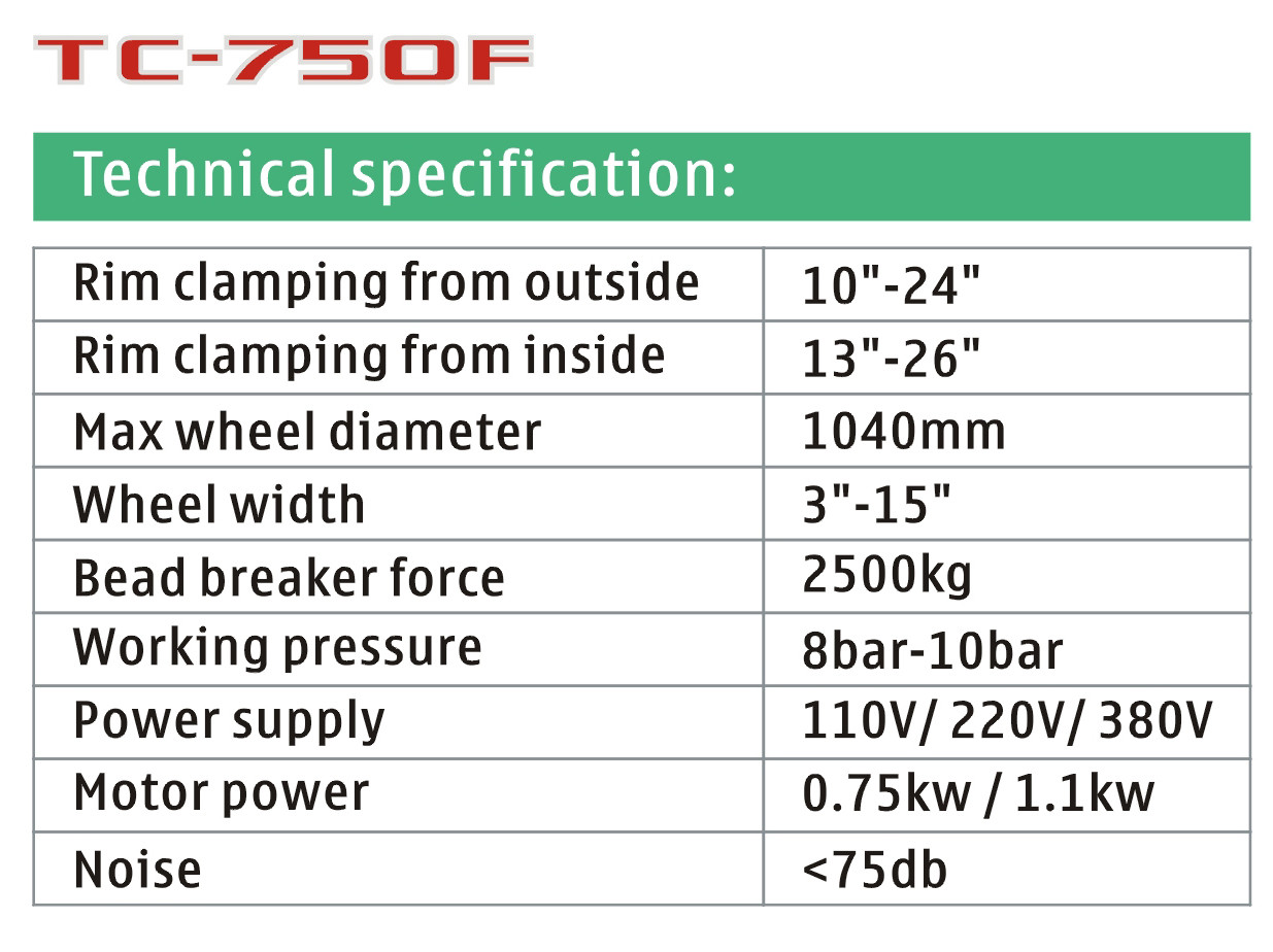 타이어 교환기 TC-750F / 자동차 타이어 교환기 / 타이어 교환기 / 타이어 기계