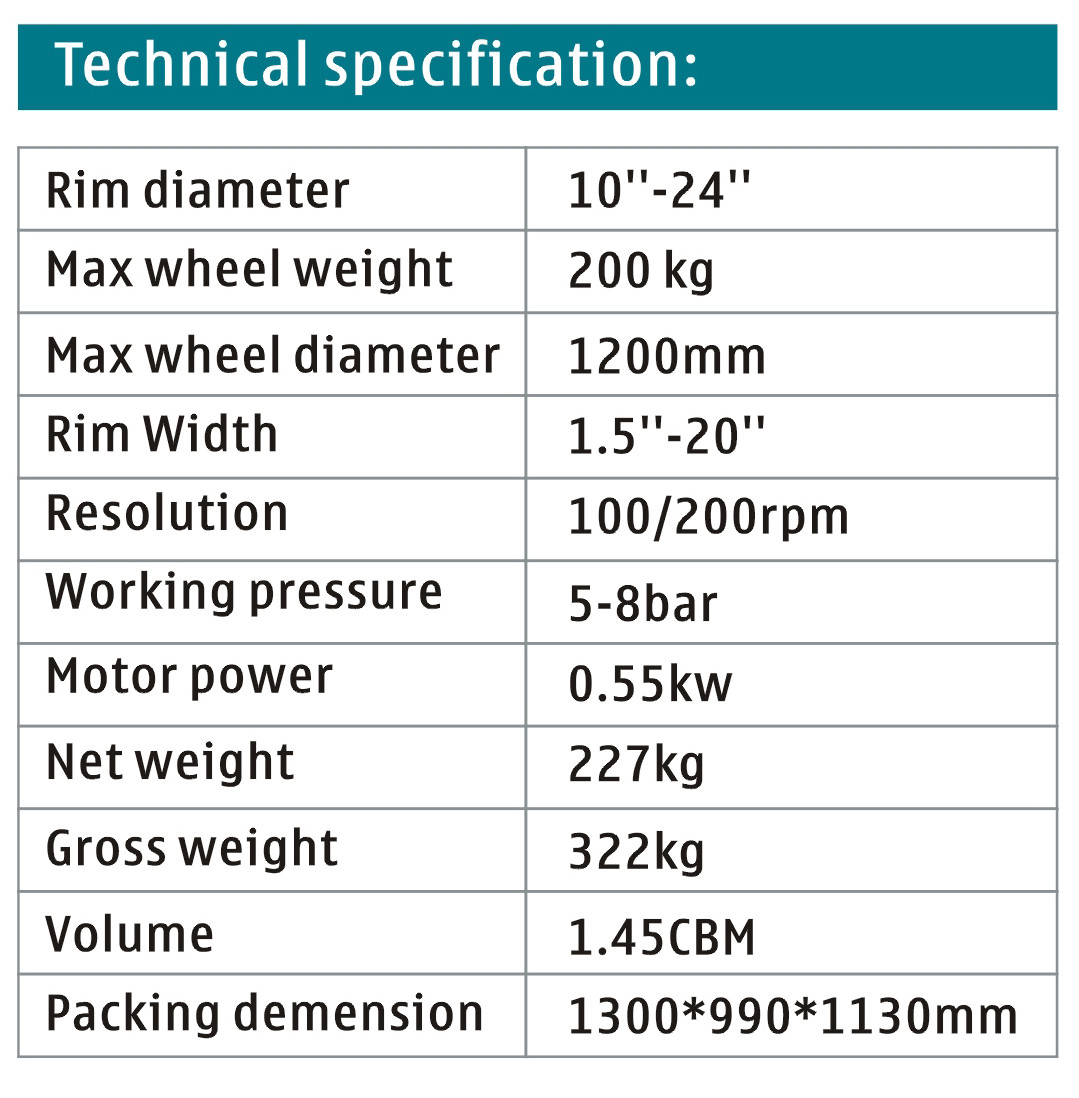 WB-6080 트럭 휠 밸런서 기술 사양: