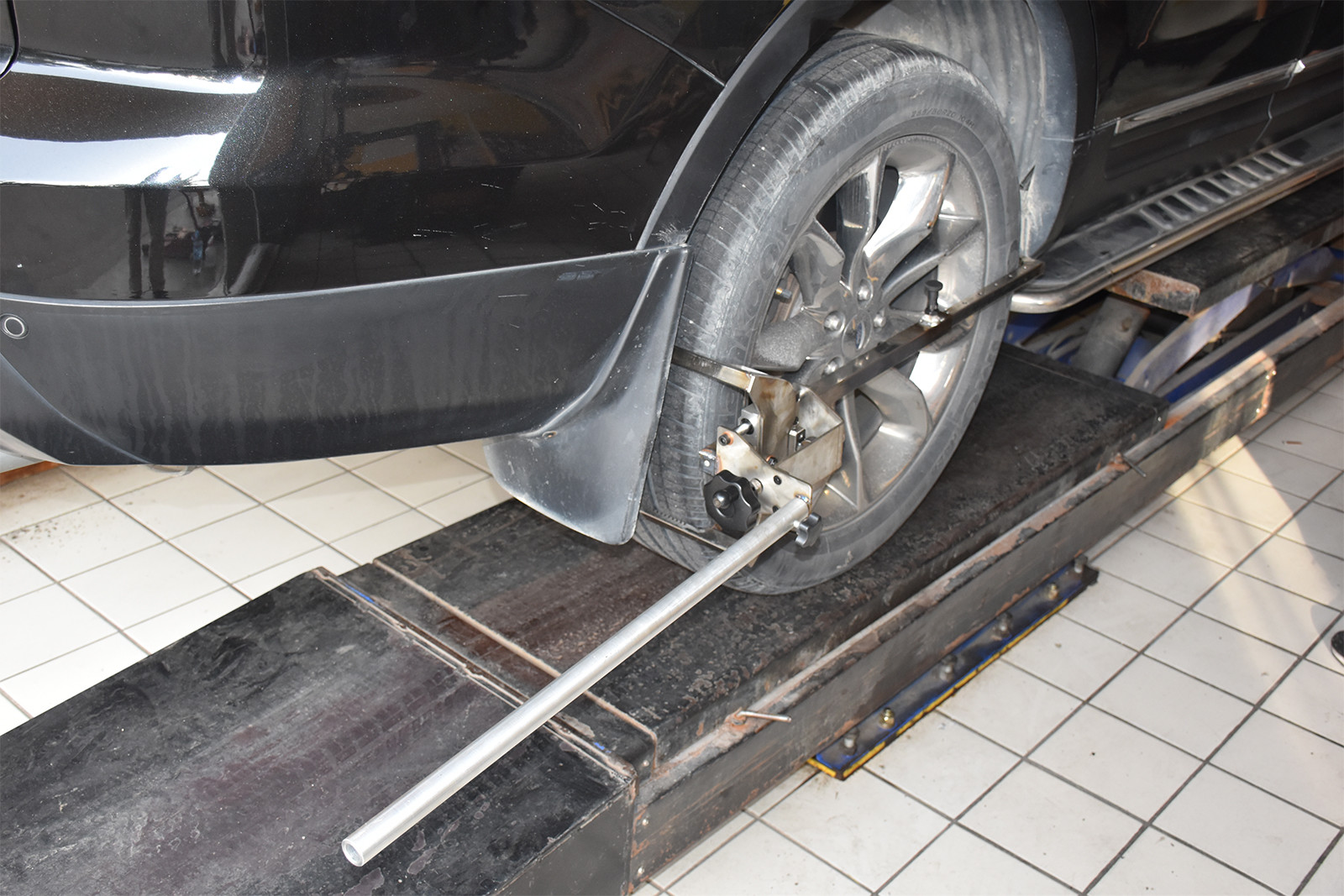 진정한 4륜 얼라인먼트를 위해 토우 치수가 차량의 중심선과 평행합니다.